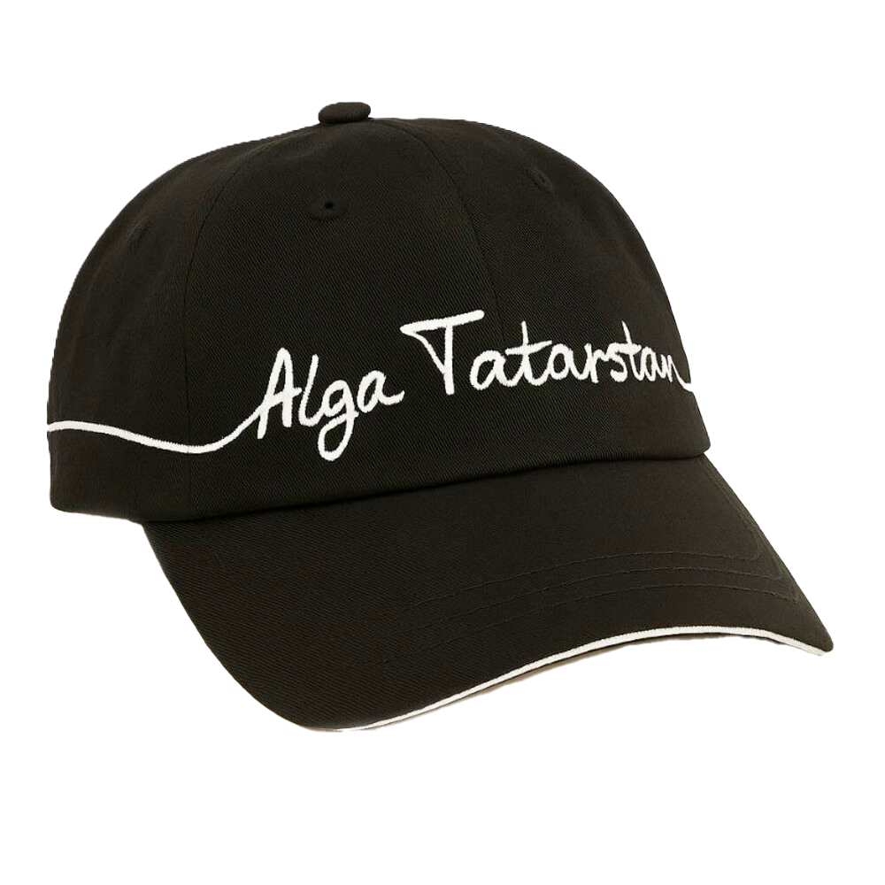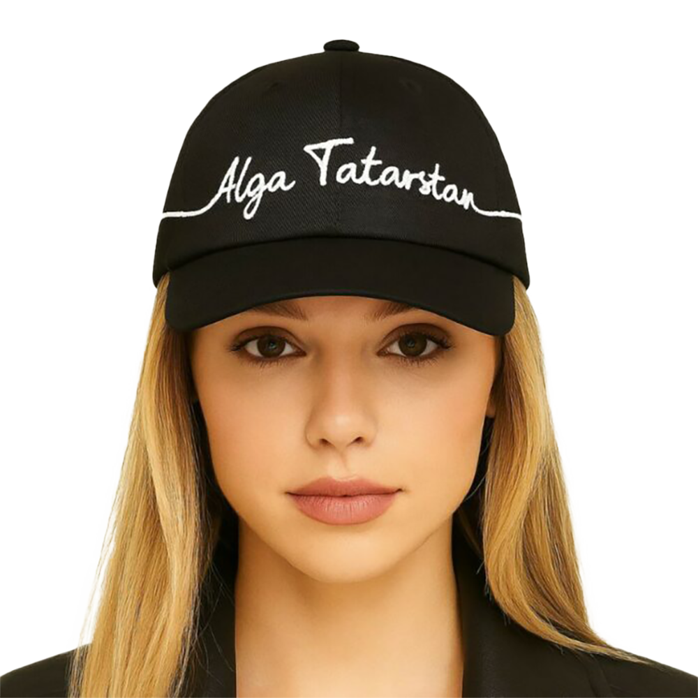 Бейсболку из лёгкой чёрной ткани оформили вышивкой Alga Tatarstan в каллиграфическом стиле. Минималистичная форма и изящная линия надписи подчёркивают национальный характер модели. Удобная посадка и мягкая фактура делают её уместной как в городе, так и на отдыхе.
