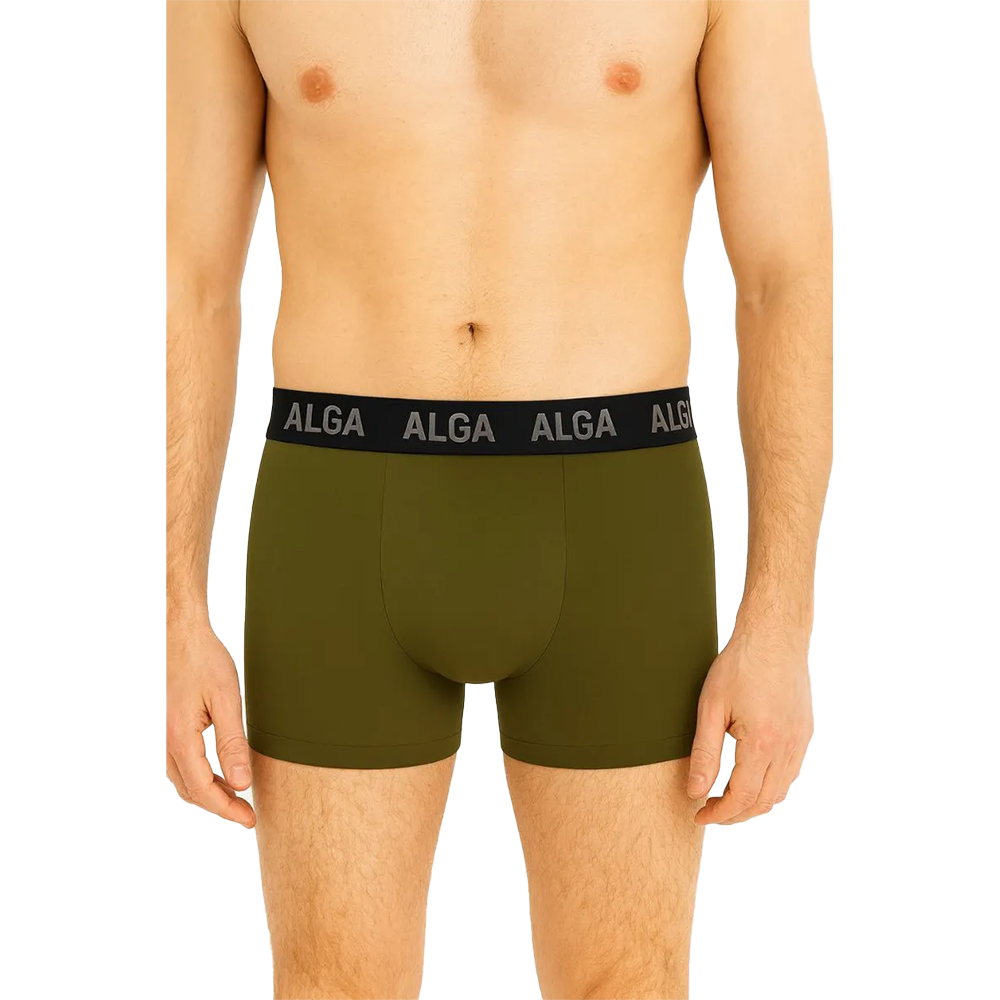 Боксеры ALGA в природном оттенке хаки созданы для тех, кто ценит незаметный, но качественный комфорт. Модель выполнена из мягкого трикотажа на основе хлопка и эластана — дышащего, эластичного и приятного к телу. Такой состав не только сохраняет форму после многократных стирок, но и обеспечивает свободу движений без давления.